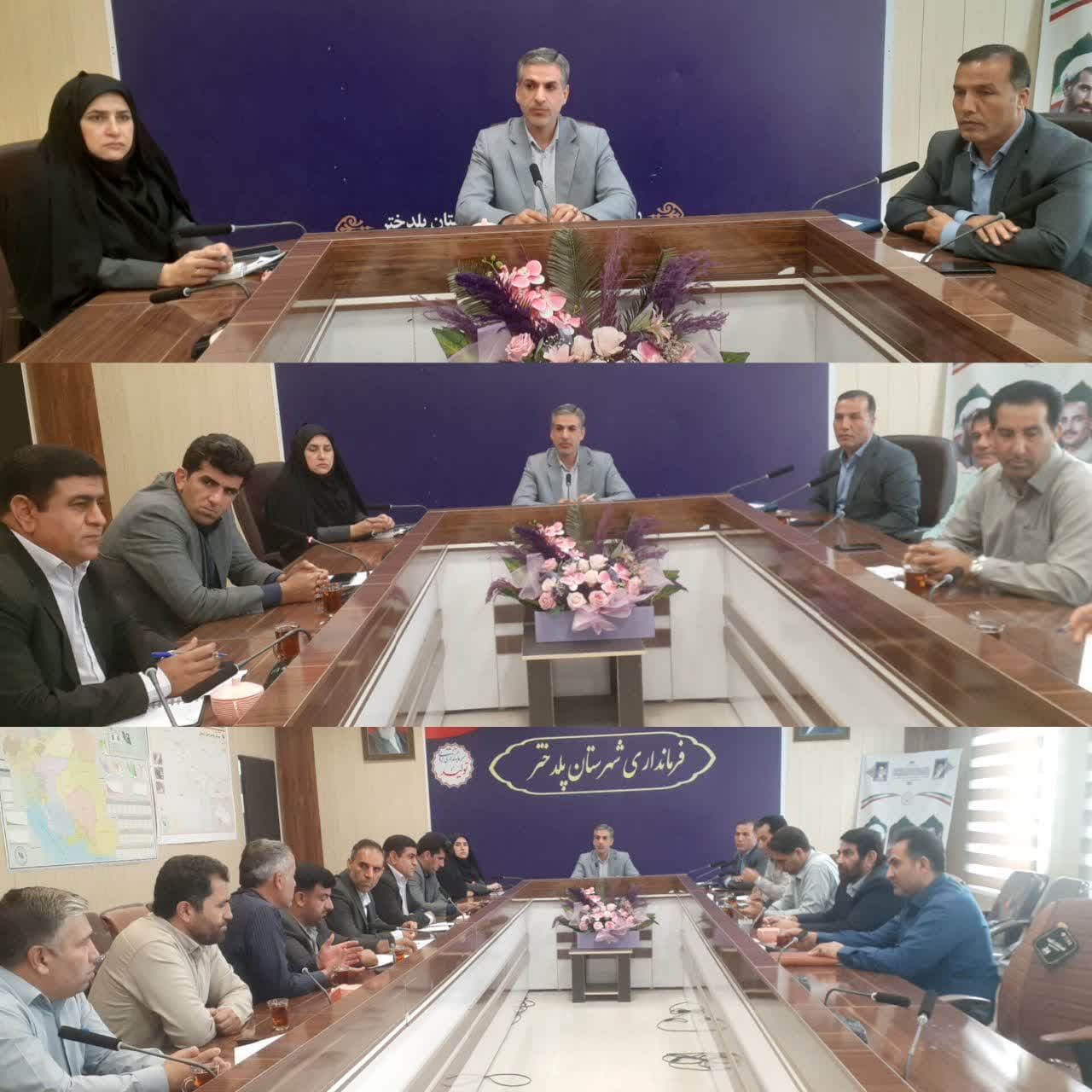 به گزارش روابط عمومی فرمانداری شهرستان پلدخترامروز سه شنبه ۲۳ اردیبهشت ماه جلسه ستاد تنظیم بازار درشهرستان پلدختر به ریاست رضایی سرپرست فرمانداری شهرستان پلدختر ، معاون عمرانی فرمانداری وسایر اعضا در سالن جلسات فرمانداری این شهرستان برگزارشد .
